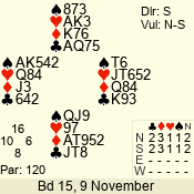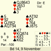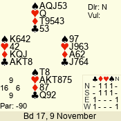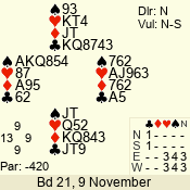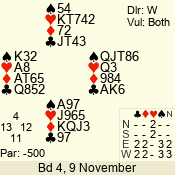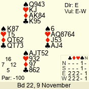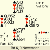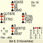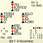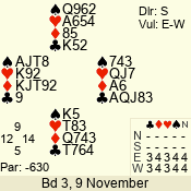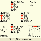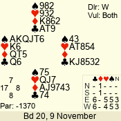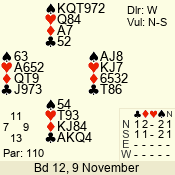 Con | Dc | Res | Score | Ld | Pairs | Rd | Tbl | 3 N | S | = | 400 | 3 | 06 - 04 | 11 | 6 |