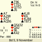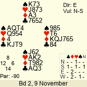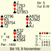 Con | Dc | Res | Score | Ld | Pairs | Rd | Tbl | 5 N | E | -4 | 400 | 2 | 04 - 06 | 11 | 4 |