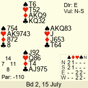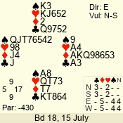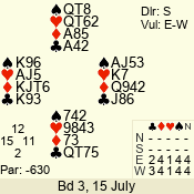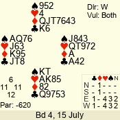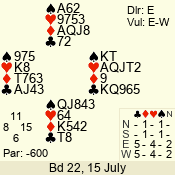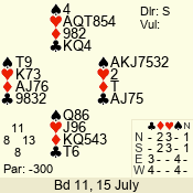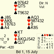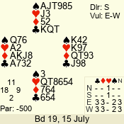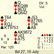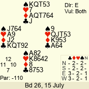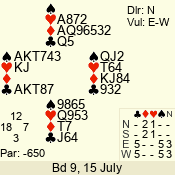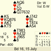 | 3 NT | W | +1 | -630 | 2 | 01 - 01 | 1 | 1 |