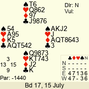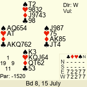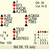 | 3 NT | W | +1 | -630 | 2 | 03 - 05 | 6 | 3 |