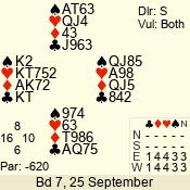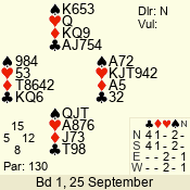 | Con | Dc | Res | Score | Ld | Pairs | Rd | Tbl | Sec |  | 3 N | N | +1 | 630 | 3  | 07 - 04 | 2 | 2 | a |