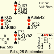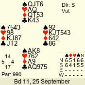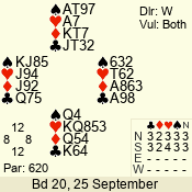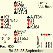 | Con | Dc | Res | Score | Ld | Pairs | Rd | Tbl | Sec |  4   | S | +2 | 680 | K  | 08 - 01 | 1 | 1 | a |