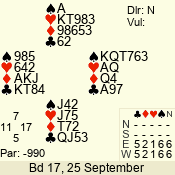 | Con | Dc | Res | Score | Ld | Pairs | Rd | Tbl | Sec |  | 3 N | N | +3 | 490 | 5  | 04 - 06 | 5 | 3 | a |