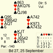 | Con | Dc | Res | Score | Ld | Pairs | Rd | Tbl | Sec |  3   | S | = | 140 | Q  | 08 - 01 | 1 | 1 | a |