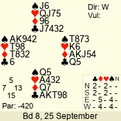 | Con | Dc | Res | Score | Ld | Pairs | Rd | Tbl | Sec |  4   | S | = | 420 | 7  | 08 - 02 | 2 | 1 | a |