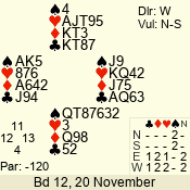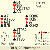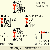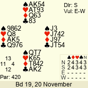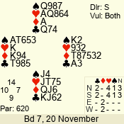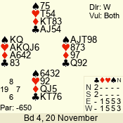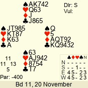 Con | Dc | Res | Score | Ld | Pairs | Rd | Tbl | 4  | S | = | 420 | T | 04 - 06 | 6 | 4 |