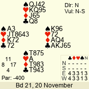 Con | Dc | Res | Score | Ld | Pairs | Rd | Tbl | 3 N | S | +1 | 430 | 3 | 05 - 02 | 4 | 5 |