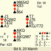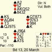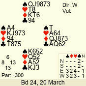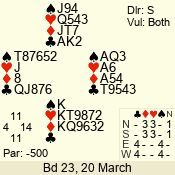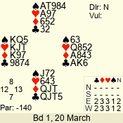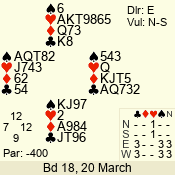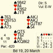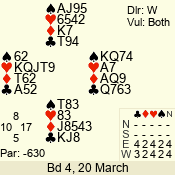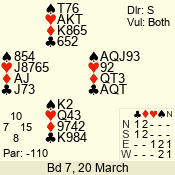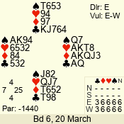 | 3 NT | E | +1 | -630 | 3 | 07 - 05 | 3 | 7 |