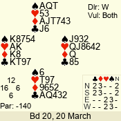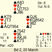 | Con | Dc | Res | Score | Ld | Pairs | Rd | Tbl | 4  | S | = | 420 | A | 01 - 04 | 6 | 1 |