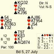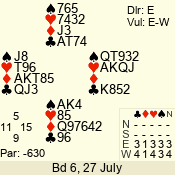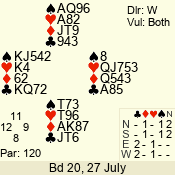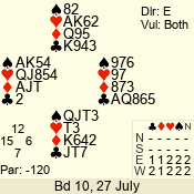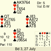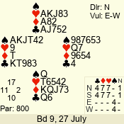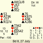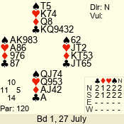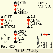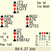 Con | Dc | Res | Score | Ld | Pairs | Rd | Tbl | 3 N | S | = | 400 | A | 18 - 01 | 1 | 1 |
