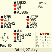 Con | Dc | Res | Score | Ld | Pairs | Rd | Tbl | 3 N | S | +3 | 490 | 4 | 18 - 11 | 11 | 1 |