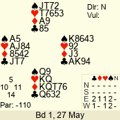 Con | Dc | Res | Score | Ld | Pairs | Rd | Tbl | 4 x | W | -3 | 500 | T | 11 - 13 | 10 | 2 |