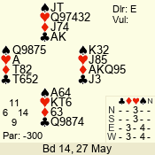 Con | Dc | Res | Score | Ld | Pairs | Rd | Tbl | 3 N | E | -1 | 100 | 2 | 14 - 04 | 4 | 4 |
