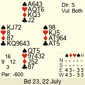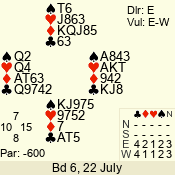 Con | Dc | Res | Score | Ld | Pairs | Rd | Tbl | 3 NT | S | = | 600 | 6 | 04 - 10 | 13 | 6 |