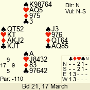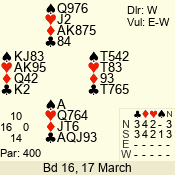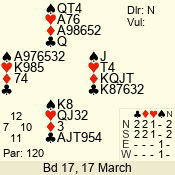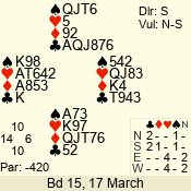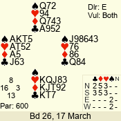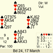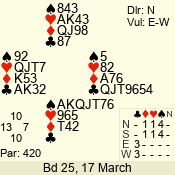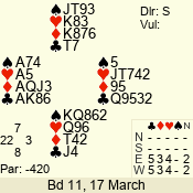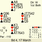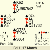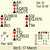| Con | Dc | Res | Score | Ld | Pairs | Rd | Tbl | | 3 N | S | +1 | 430 | 3 | 06 - 06 | 1 | 6 |