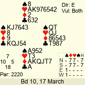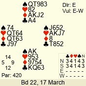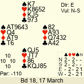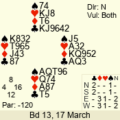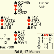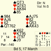 | Con | Dc | Res | Score | Ld | Pairs | Rd | Tbl | | 3 N | E | -4 | 200 | 5 | 04 - 01 | 4 | 4 |