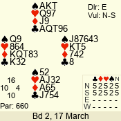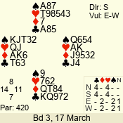 | Con | Dc | Res | Score | Ld | Pairs | Rd | Tbl | | 3 N | S | +2 | 660 | 6 | 03 - 04 | 7 | 3 |
