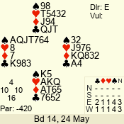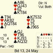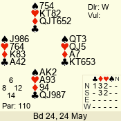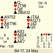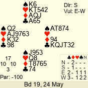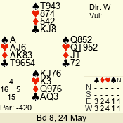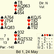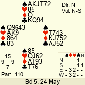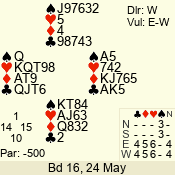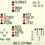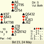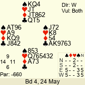 | 3 NT | W | +2 | -660 | 5 | 03 - 06 | 7 | 5 |