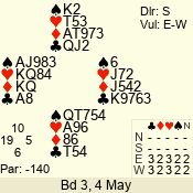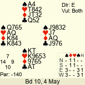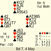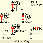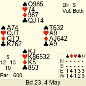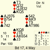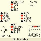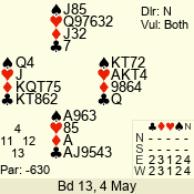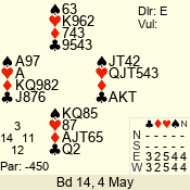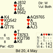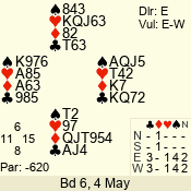 | 3 NT | W | +1 | -630 | 7 | 03 - 04 | 6 | 5 |