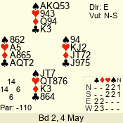 | Con | Dc | Res | Score | Ld | Pairs | Rd | Tbl | 4  | E | -3 | 150 | K | 07 - 02 | 3 | 3 |