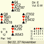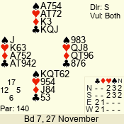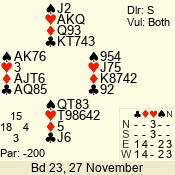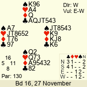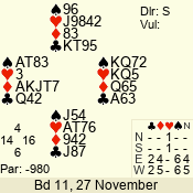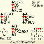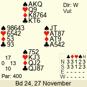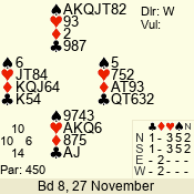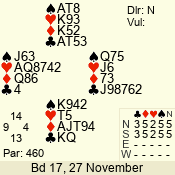 | Con | Dc | Res | Score | Ld | Pairs | Rd | Tbl | | 3 N | N | +2 | 460 | 6 | 08 - 03 | 6 | 8 |