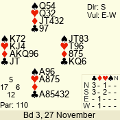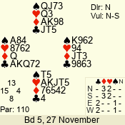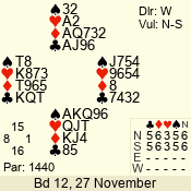 | Con | Dc | Res | Score | Ld | Pairs | Rd | Tbl | | 3 N | N | +2 | 460 | 3 | 03 - 06 | 6 | 3 |