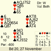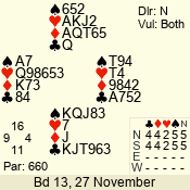 | Con | Dc | Res | Score | Ld | Pairs | Rd | Tbl | | 6 N | S | +1 | 1470 | 6 | 03 - 01 | 3 | 3 |