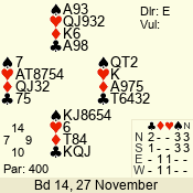 | Con | Dc | Res | Score | Ld | Pairs | Rd | Tbl | 4  | E | -4 | 400 | A | 01 - 01 | 1 | 1 |