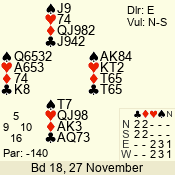 | Con | Dc | Res | Score | Ld | Pairs | Rd | Tbl | | 3 N | E | +2 | -460 | J | 05 - 07 | 7 | 5 |