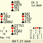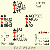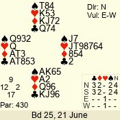 | Con | Dc | Res | Score | Ld | Pairs | Rd | Tbl | | 2 N | W | -1 | 50 | 6 | 03 - 07 | 4 | 3 |