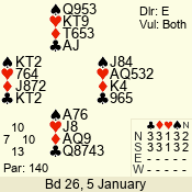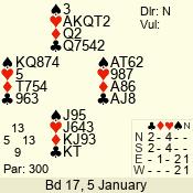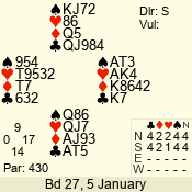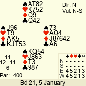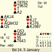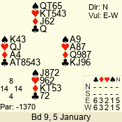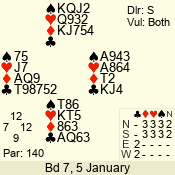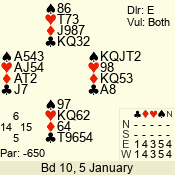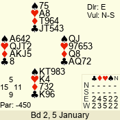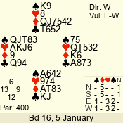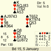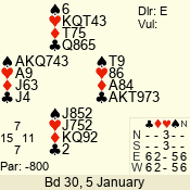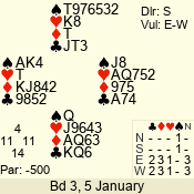 | Con | Dc | Res | Score | Ld | Pairs | Rd | Tbl |  | 2 N x | E | -4 | 800 | 3  | 23 - 22 | 2 | 23 |