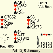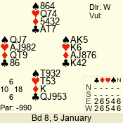 | Con | Dc | Res | Score | Ld | Pairs | Rd | Tbl |  | 3 N | W | -1 | 50 | J  | 02 - 13 | 13 | 2 |