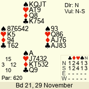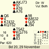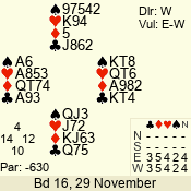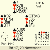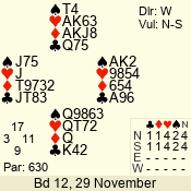 | Con | Dc | Res | Score | Ld | Pairs | Rd | Tbl | | 3 N | N | +1 | 630 | A | 06 - 04 | 3 | 6 |