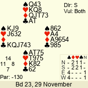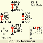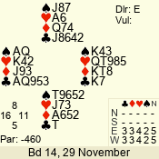 | Con | Dc | Res | Score | Ld | Pairs | Rd | Tbl | | 3 N | E | -4 | 400 | 3 | 06 - 03 | 4 | 6 |