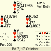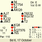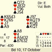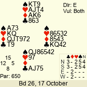 Con | Dc | Res | Score | Ld | Pairs | Rd | Tbl | 4  | S | +1 | 650 | Q | 13 - 06 | 2 | 7 |