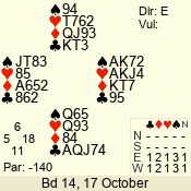 Con | Dc | Res | Score | Ld | Pairs | Rd | Tbl | 4  | E | -2 | 100 | K | 14 - 08 | 8 | 6 |