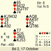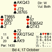 Con | Dc | Res | Score | Ld | Pairs | Rd | Tbl | 4 x | N | +2 | 1190 | 2 | 11 - 06 | 1 | 3 |