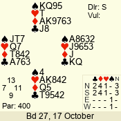 Con | Dc | Res | Score | Ld | Pairs | Rd | Tbl | 5  | S | = | 400 | A | 10 - 06 | 7 | 4 |