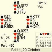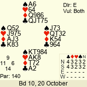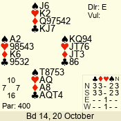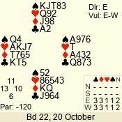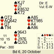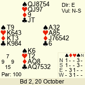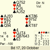 Con | Dc | Res | Score | Ld | Pairs | Rd | Tbl | 3 N | E | -1 | 100 | 2 | 11 - 09 | 3 | 11 |
