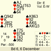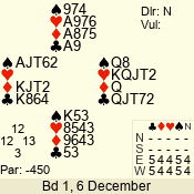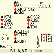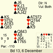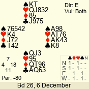 | Con | Dc | Res | Score | Ld | Pairs | Rd | Tbl |  | 3 N x | E | -4 | 1100 | 8  | 04 - 08 | 11 | 6 |