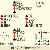 | Con | Dc | Res | Score | Ld | Pairs | Rd | Tbl |  | 3 N | S | +2 | 460 | 7  | 06 - 13 | 2 | 1 |