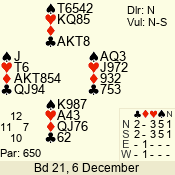| Con | Dc | Res | Score | Ld | Pairs | Rd | Tbl |  4   | N | +1 | 650 | 9  | 11 - 13 | 10 | 2 |
