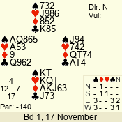 | 3 NT | W | +2 | -460 | 3 | 03 - 09 | 4 | 3 |