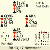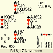 | 3 NT | S | +1 | 630 | Q | 06 - 01 | 6 | 6 |