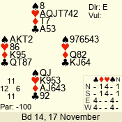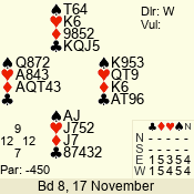 | 3 NT | W | +2 | -460 | 4 | 08 - 09 | 9 | 8 |