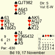 | 3 NT | S | +1 | 630 | T | 06 - 04 | 3 | 6 |
