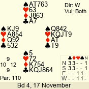 | 3 NT | W | +4 | -520 | 3 | 06 - 06 | 1 | 6 |