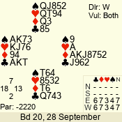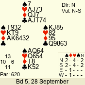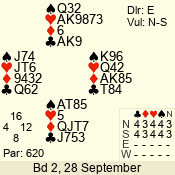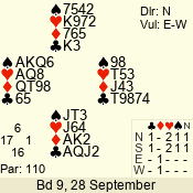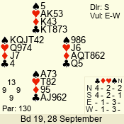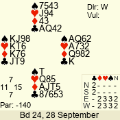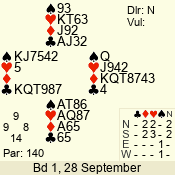 Con | Dc | Res | Score | Ld | Pairs | Rd | Tbl | 1  | S | +2 | 140 | J | 10 - 09 | 1 | 4 |
