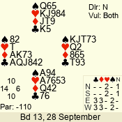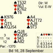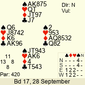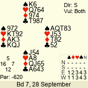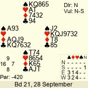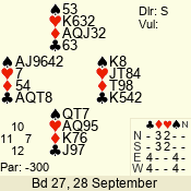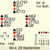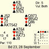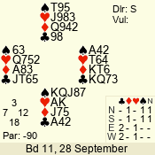 Con | Dc | Res | Score | Ld | Pairs | Rd | Tbl | 4  | S | +1 | 450 | A | 11 - 03 | 7 | 3 |