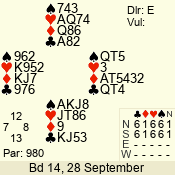 Con | Dc | Res | Score | Ld | Pairs | Rd | Tbl | 4  | E | -3 | 150 | A | 10 - 03 | 4 | 4 |